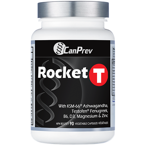 Losing muscle mass? Experiencing reduced sex drive? Feeling low on energy and mood? It could be low testosterone. CanPrev’s Rocket T promotes healthy testosterone levels to enhance athletic performance while supporting muscle growth and sex drive. Featuring Testofen®, KSM-66® ashwagandha, and minerals essential for anabolic hormone production.