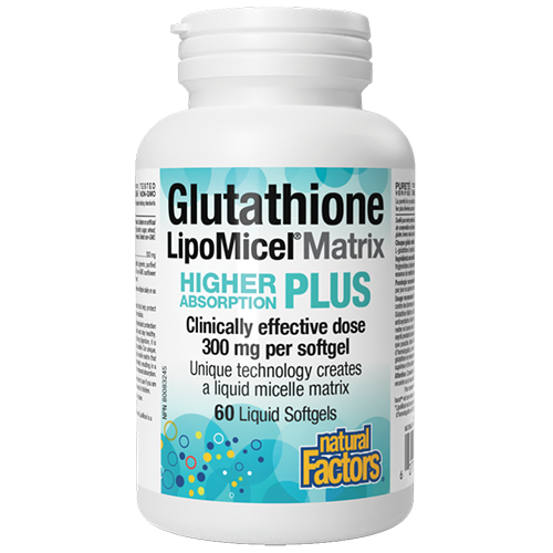 Natural Factors Glutathione LipoMicel Matrix delivers an enhanced source of the antioxidant glutathione to protect your body from the oxidative damage caused by free radicals. Glutathione is used by the body to defend against free radical damage and is found in high amounts in the liver. Our unique patent-pending technology creates a liquid micelle matrix that disperses the glutathione into tiny micro-droplets, resulting in a highly stable delivery system for higher absorption than standard forms.