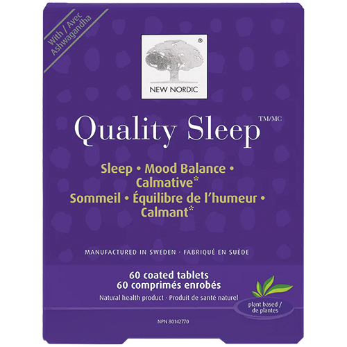 Quality Sleep by New Nordic is a natural, melatonin-free formula designed to calm the mind and support restful sleep. With ingredients like L-theanine, ashwagandha, chamomile, lemon balm, and magnesium, it helps reduce restlessness, promote relaxation, and support a healthy mood balance for better, more restorative nights.